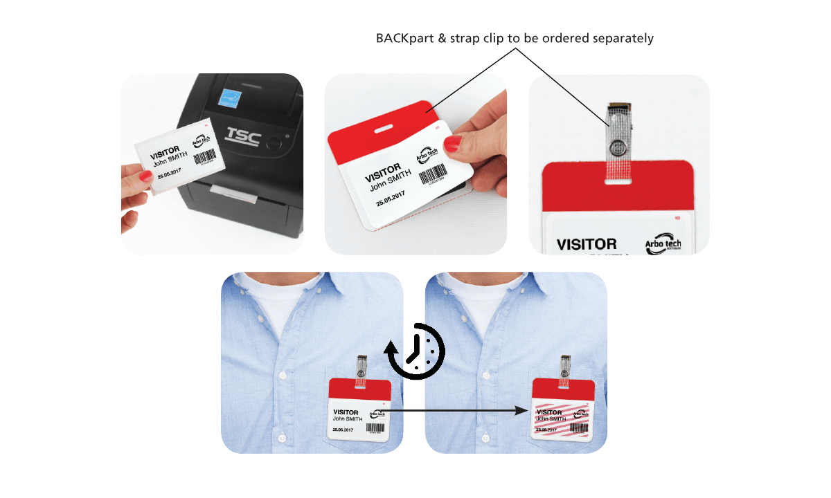 Vereinfachen Sie das Besuchermanagement mit unseren benutzerfreundlichen TEMPBadge-Thermobadges in zwei Teilen. Wenn ein neuer Besucher an der Rezeption eintrifft, drucken Sie einfach die Vorderseite des Badges aus, kombinieren Sie sie mit der Rückseite und befestigen Sie den Badge am Besucher für eine sofortige Identifikation. Dieses Produkt enthält ausschließlich die Vorderseite (bedruckbare Badge-Etiketten). Die Rückseiten müssen separat erworben werden, um das Badgesystem zu vervollständigen.