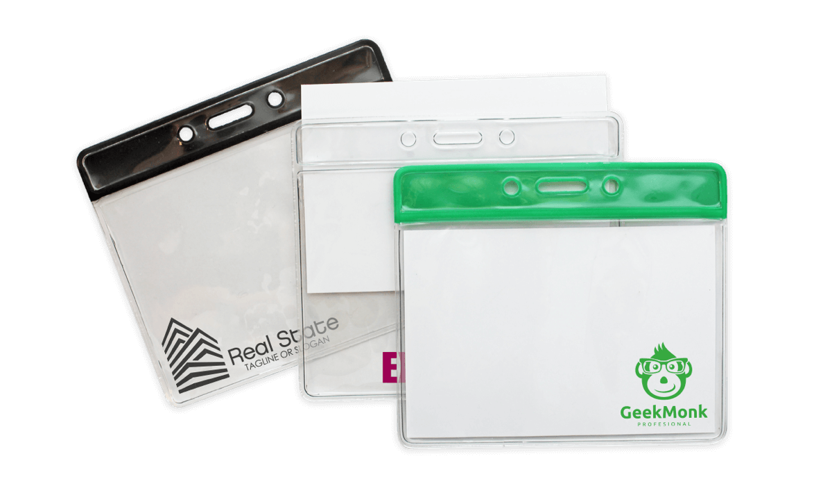 Personalisieren Sie Ihren farbcodierten Kartenhalter mit Ihren eigenen Grafiken oder Logos!Transparentes Vinyl-Etui mit Farbsteg oben und Lang-/Kettenlöchern.Ideale Größe für Ausweise und Namensschilder!