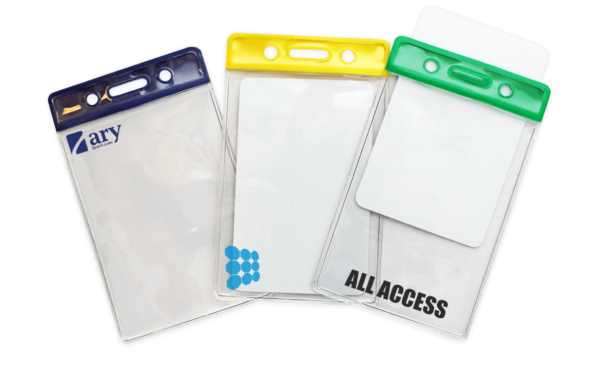 Personalisieren Sie Ihren Kartenhalter mit Ihren eigenen Grafiken oder Logos!Transparentes Vinyl-Etui mit Farbsteg oben und Lang-/Kettenlöchern.Ideale Größe für Ausweise und Namensschilder!